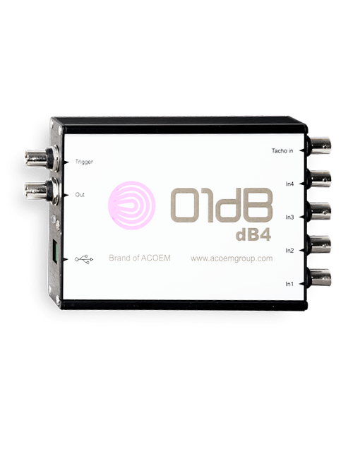 • dB4 è la nuova scheda di acquisizione a 5 canali per applicazioni di acustica e vibrazioni. Quattro canali sincroni IEPE (ICP) a 24bit più un ingresso tachimetrico permettono un’acquisizione temporale...